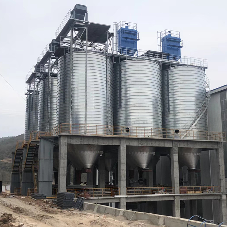接收与清理设置在筒仓中央该形式筒仓一般采用对称排列,提升机井架固定,经过提升后的物料通过仓顶溜管进人筒仓。这种形式省去了仓顶输送设备和上通廊,从而节省了建造费用,缩短了建造工期。对于贮存时间要求较长的大型粮库,则应根据物料的流向、场地情况、工艺要求等合理地配置投料口、工作塔、烘干塔及黄南钢板仓的位置。国华钢板仓介绍了这几种常见的进料形式,实际中可将各种形式相互组合,相互渗透,根据实际情况合理搭配,灵活选用。
